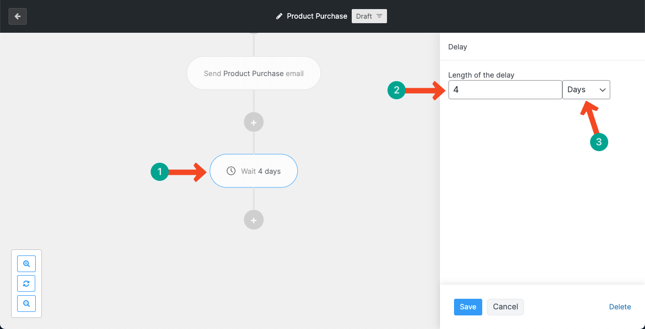 Once the delay time is set, select the Email option if you don't want to add any other option in between.